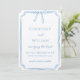 Announce your wedding in style with this classic "tying the knot" bow-themed save-the-date card, perfect for the elegant couple. This announcement exudes timeless elegance, featuring a colour scheme that evokes the "something blue" tradition and a delicate hand-drawn bow. The customisable text is ideal for formal weddings, allowing you to add your unique details and create a personalised touch. Whether you're planning a chic urban ceremony or a countryside celebration, this versatile template complements any wedding style. Make a lasting first impression with this stylish save-the-date card.