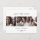 This chic typography 3 photo template save the date postcard is perfect for a modern wedding. The simple design features classic minimalist black and white typography with a rustic boho feel. Customisable in any colour. Keep the design minimal and elegant, as is, or personalise it by adding your own graphics and artwork.