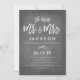 Chic and modern engagement party invitation for the future Mr. and Mrs. on a chalkboard background. Select a die-cut shape or textured paper for an extra lux invitation.