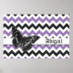 Chic Vintage Butterfly Purple Grey Chevron Pattern Poster