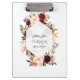 Chic Watercolour Burgundy Floral Navy Monogram Clipboard
