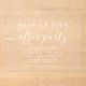 Chic clear acrylic invitation for your wedding after party or reception. "Happily Ever After Party" is written in a mix of simple white typography and a modern white script with swashes.