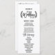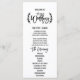 This chic white black olive branches wedding program is perfect for a trendy wedding. The design features fun hand lettered typography with delightful loops and swirls surrounded by simple laurel leaves. Include the name of the bride and groom, the wedding date and location, thank you message, order of service and the bridal party.