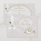 Elegant and stylish Save the Date invitations with a cute white dove edged in gold with silver glitter tail feathers carrying a beautiful bling jewel heart with ribbon. There is a lovely white ribbon and bow ornament with beautiful silver and white cameo brooch, diamond jewels and white feathers on a chic white paisley lace background with pretty lace and pearls mat for the text. These glamourous invites are decorated on both sides. Beautiful, chic, trendy, modern invitations with a romantic vintage look. Perfect for a spring, summer, fall / autumn or winter wedding. Pearls and lace mat by ©Hazel Kinvig-Paul www.design-a-dream.co.uk PLEASE NOTE: All products on Zazzle have flat printed images. Text, font and colour of font are all customisable. I have matching products in my store. If you need assistance customising your product please contact me through my store and I will be happy to help.
