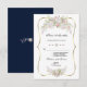 Elegant White Pink Roses Gold Frame card design featuring gorgeous watercolour floral bouquets, arrows with hearts and floral bouquet as a divider; on the back a rich navy blue background with elegant floral divider. Use Customise tool to add your info. You can change fonts, colours. For matching items, please, visit my White flowers Gold Collection.
