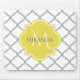 Chic White Gray Quatrefoil Yellow Monogrammed Name Mouse Mat