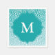 Chic White Leopard Spots on Turquoise Monogram Napkin