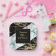 A modern, stylish and glamourous birthday paper plate. Black and shiny gold foil paint marble structure with white marble stone background. Personalise and add your party details. Make your milestone birthday an extraordinary event!
