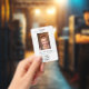 Modern chic white marble logo employee photo pass, add your photo, name, title, company logo.