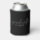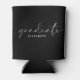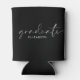 Chic black can cooler to toast the graduate at her graduation party featuring "graduate" in a modern white script and her name in simple white typography.