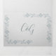 Elegant white textured looking all in one wedding invitation, reception card and RSVP post card. Graphics of slate teal floral garlands decorate the outside front and inside of the invitation. The bride and groom's monograms are on the front of the card. Personalise every text fields with your information.