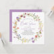 An elegant bridal shower invitation featuring "Bridal Shower" showcased in a chic lavender purple script, and a boho-inspired wreath of purple, pink, peach and yellow wildflower watercolors. Personalise the bride's name and shower details in simple lavender and grey lettering.