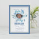 A chic, watercolor, winter invitation featuring frosted pine branches and cones in shades of blue. The round photo window is framed and ready to hold your child's photo.