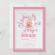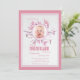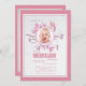 A chic, watercolor, winter invitation featuring frosted pine branches and cones in shades of pink. The round photo window is framed and ready to hold your child's photo.