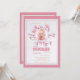 A chic, watercolor, winter invitation featuring frosted pine branches and cones in shades of pink. The round photo window is framed and ready to hold your child's photo.