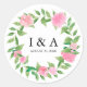 Chic Wreath with Monogram and Wedding Date Classic Round Sticker