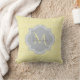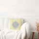 A chic yellow art deco arched scallop pattern square throw pillow with a soft grey quatrefoil badge you can personalise by easily adding your own monogram and name. This is part of the Meadowlark Scallops Harbour Mist Monogram Spring Collection.