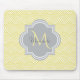 A chic yellow art deco arched scallop pattern mousepad with a soft grey quatrefoil badge you can personalise by easily adding your own monogram and name. This is part of the Meadowlark Scallops Harbour Mist Monogram Spring Collection.