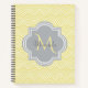 A chic yellow art deco arched scallop pattern standards size notebook with a soft grey quatrefoil badge you can personalise by easily adding your own monogram and name. This is part of the Meadowlark Scallops Harbour Mist Monogram Spring Collection.