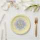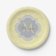 Chic yellow art deco arched scallop pattern paper plates with a soft grey quatrefoil badge you can personalise by easily adding your own monogram and name. This is part of the Meadowlark Scallops Harbour Mist Monogram Spring Collection.