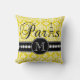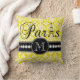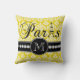 This black, white and bright yellow chic vintage damask pattern throw pillow with personalised your monogram initial, the word "Paris" with the Eiffel Tower and a line of printed white diamonds on a black band will look amazing in your bedroom or living room as an accent pillow. Monogram Gallery Gifts© Elke Clarke Designs ©