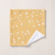 A personalised, monogram set of bath towels that would make a nice gift for a girly, sweet birthday girl of any age: 1st birthday, 3rd birthday, 16th birthday, 21th birthday or 50'th birthday! Also a nice gift for a wedding, bridal shower, anniversary, baby shower or bachelorette party. The yellow, textured background has a floral pattern: hand drawn daisies sprinkled on. The design has a rustic, cottagecore, farmhouse look. The text: the name is written in a gold colour with a modern hand lettered style script. Template for the name and the monogram. Nice Christmas gift for someone who loves flowers, daisies, yellow, floral designs, botanical patterns, summertime or springtime.