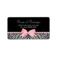 Add flair to your correspondence with clients and customers with these chic and stylish zebra print boutique return address labels with a soft light pink ribbon tied into a cute girly bow. Personalise this trendy animal print label by adding the name of your company and contact information. This is a flat printed image, not actual ribbon, and is part of a boutique set.