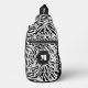 Chic black and white zebra pattern is printed on the front of this sling bag with your name on the side and your monogram initial on the front. Create for yourself or give as a gift.