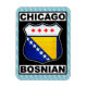 Classic road style design shield, with the text Chicago Bosnian, and the flags of the City of Chciago and Bosnia and Herzegovina