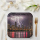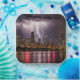 Chicago city skyline at night with lightning strikes in a thunderstorm