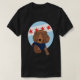 I give wanted to give this a 4 instead of a 5 because these Basic DARK T0shirts run unexpectedly SLIM or Narrow. Which is great if you do not have a potbelly, but I have a paunch. It isn't the shirt's fault that I've got a beer belly. The design and shirt itself is a quality cotton shirt. The color is more of a deep purple, but still a very pretty color. The Basic DARK T-shirts run a bit SLIMMER than the Basic Ts. The neck is a fraction narrower (or seems to be narrower) also. I'm a paunchy middle-aged woman and my neck is 12 inches (31cm) thick and the neckline fell about the same as in the photo of the man, and I had the desire to tug it a bit. So if you're a thick necked man or like loose shirts, be aware these are slimmer shirts. Once I get rid of my lockdown paunch it'll look great. The shirt washed well in cold water with no apparent bleeding. We don't have a dryer, so it hung dry. Did not shrink. Love the colors and the design. The design looks smaller on my shirt than it does on the model on-line. But still, it looks good on the shirt. The printing looks as it does on the model, just the size seems fractionally smaller. Washed garment in cold water, hung dry and design appeared unaffected.