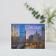 <br><br> This fun travel post card features an image of Chicago, Illinois at night with the lights dancing on the river. Chicago is nicknamed the windy city and is the third largest city in the United States.
