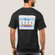 This Chicago PRIDE design combines the elements of the Chicago flag with the LBGTQ rainbow colours. The word Chicago is in a blue script type font. The four stars and the word "PRIDE" are in the rainbow colours. The back of the shirt has a large version of the design and on the front of the shirt there is a smaller version of the logo over the left pocket area.