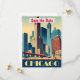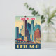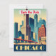 Celebrate your urban wedding with this Chicago invitation showcasing a scenic river bridge and classic skyline silhouette. The high-quality oil art style brings a mid-century charm that beautifully pairs with your travel-themed celebration.