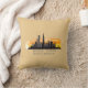 Stylish square throw pillow features Chicago Illinois city skyline silhouette with sunset watercolor splash and latitude & longitude map coordinates