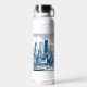 Chicago skyline water bottle featuring the Chicago, Illinois cityscape and skyline. Blue colours. Modern design. Custom text on the water bottle. Change the text or leave as is. Use the template to create your own Chicago skyline water bottle.
