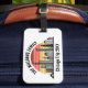 Personalized Chicago Illinois vacation luggage tag with a silhouette of the city skyline in front of a cool sunset. Cool trip keepsake souvenir for a family trip.