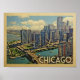 Chicago vintage travel poster featuring an expansive city skyline view with boats in the harbour. For Chicago gifts, this art print makes the perfect souvenir or memento.