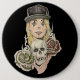 This Chicano art black button has a girl on it with a skull in her hand and two roses. One rose is a hundred dollar bill and the other rose is reddish. You can also customise this button with your own art.