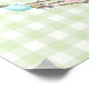 Destei's watercolor illustration featuring a yellow baby chick nestled inside a willow wreath. The wreath is decorated with colorful pastel Easter eggs. The background is a green gingham pattern.