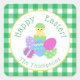 Chick Coloured Eggs Green Check Happy Easter Round Square Sticker