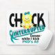 PKD warriors, fight back chick-style while making it known that PKD may have interrupted your life TEMPORARILY but you will fight it and you will win with our mad, but absolutely adorable, chick with a big head and teal bow. This light-humoured design is sure to bring a smile to a serious cause while you express your empowerment over PKD and share a message of PKD awareness. Sure to turn heads during PKD Awareness Month, PKD walks, PKD support benefits, or any other time you feel like turning up your teal ribbon spirit for PKD awareness. We proudly donate to health, animal, and Darfur charities.