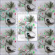 This sweet animal fabric design paints a picture of the chickadee's holiday Christmas tree in a repeating abstract pattern. Pine branches in the snow are decorated with tiny ornaments. A sweet little black capped chickadee bird sits on the lower branch.