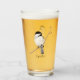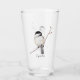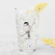A colour pencil drawing of an adorable chickadee adorns this customisable drinking glass!