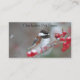 Chestnut-backed chickadee photo of the small bird sitting on a branch with red berries and snow falling.