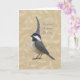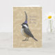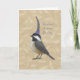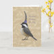 Chickadee wearing a blue vervain wildflower hat on encouragement card.