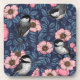 Hand drawn vector pattern with chickadee birds and pink wild roses