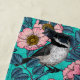 Hand drawn vector pattern with black-capped chickadee birds on a wild rose bush