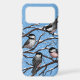 Hand drawn vector illustration of 4 chickadees in winter