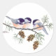 CHICKADEES & PINECONES by SHARON SHARPE Classic Round Sticker